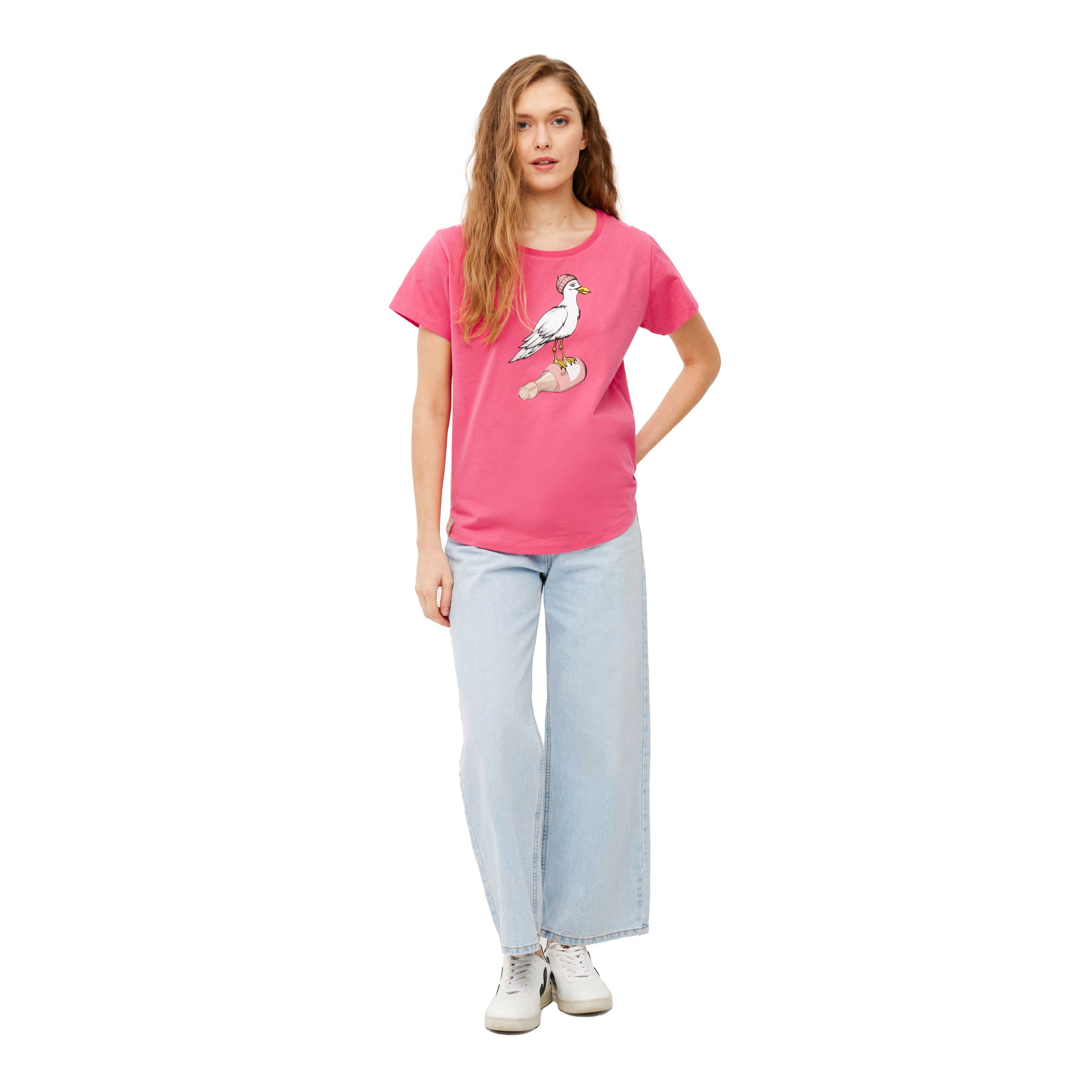 Die Sturmmöwin macht, was sie will – und das ist auch gut so! Ob in kräftigem Azalea Pink oder in entspanntem Cobblestone Beige: Dieses Shirt bringt Möwen-Power in deinen Alltag. Mit frechem Druck, prickelnder Laune und einem Hauch Rebellion ist es ein echtes Lieblingsteil für alle, die sich nicht vom Wind treiben lassen.
