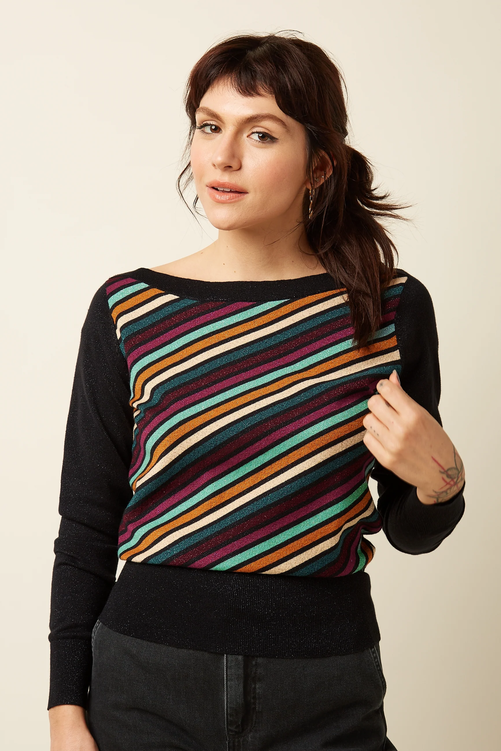 Das Ivy Top Lapis bringt frischen Wind in den Kleiderschrank – mit seinem U-Bootausschnitt, den langen Ärmeln mit Rippbündchen und dem sanften Schimmer im Lurex-Strick wirkt es elegant und zugleich herrlich bequem. Das feine Streifenmuster sorgt für eine moderne Note, während der elastische Baumwollmix das Oberteil angenehm weich und formstabil macht.