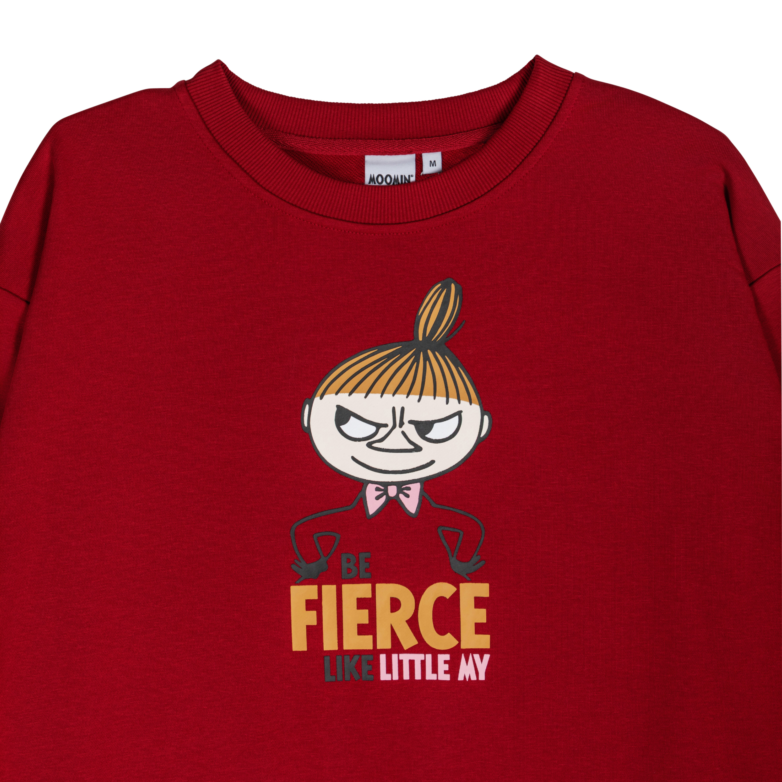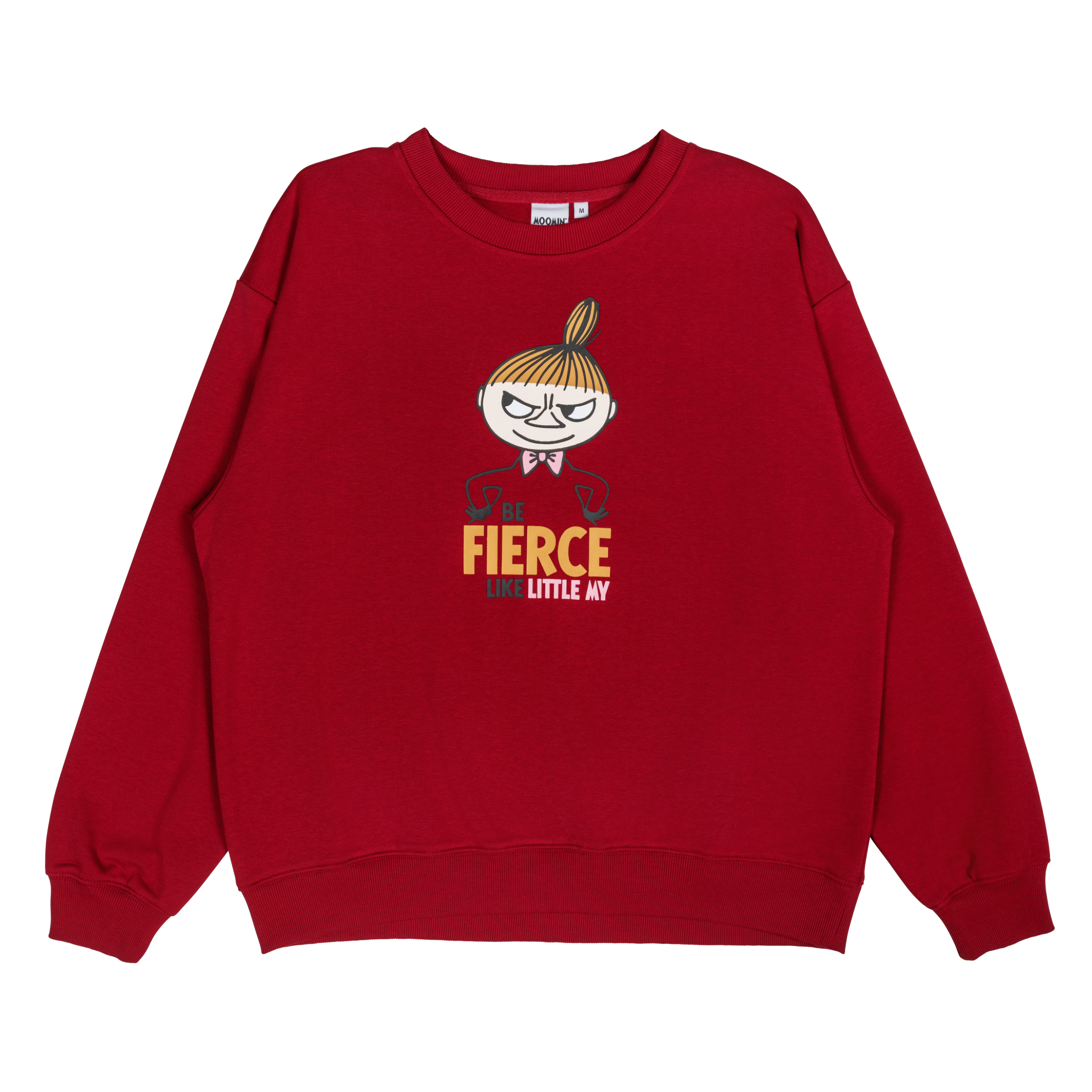 Dieses rote Sweatshirt aus der Moomin-Kollektion für Damen zeigt Little My mit dem passenden Motto: Be Fierce like Little My! – frech, mutig und wunderbar eigenwillig.