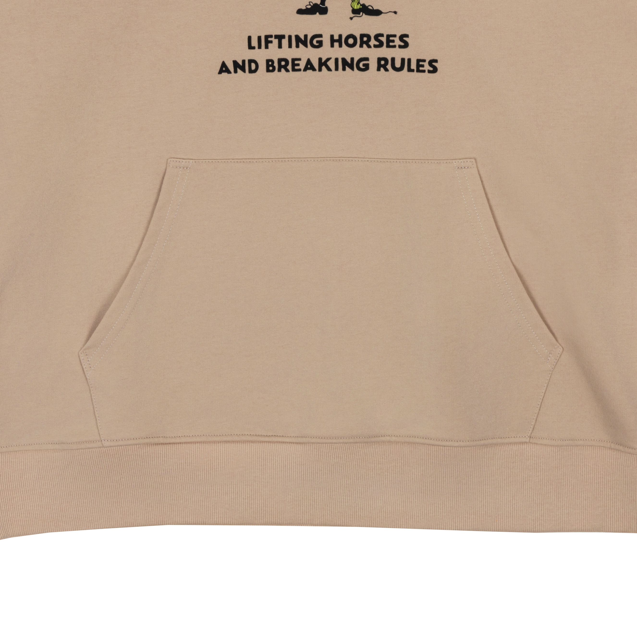 Bequem, frech und einfach typisch Pippi! Dieser beigefarbene Unisex-Hoodie für Erwachsene zeigt auf der Brust einen Jubiläumsprint von Pippi Langstrumpf samt dem Motto „Lifting horses and breaking rules“. Der Hoodie hat lange Ärmel, Rippbündchen an Ärmeln und Saum sowie eine gefütterte Kapuze mit Kordelzug. Die große Kängurutasche vorne sorgt für warme Hände und lässigen Look.