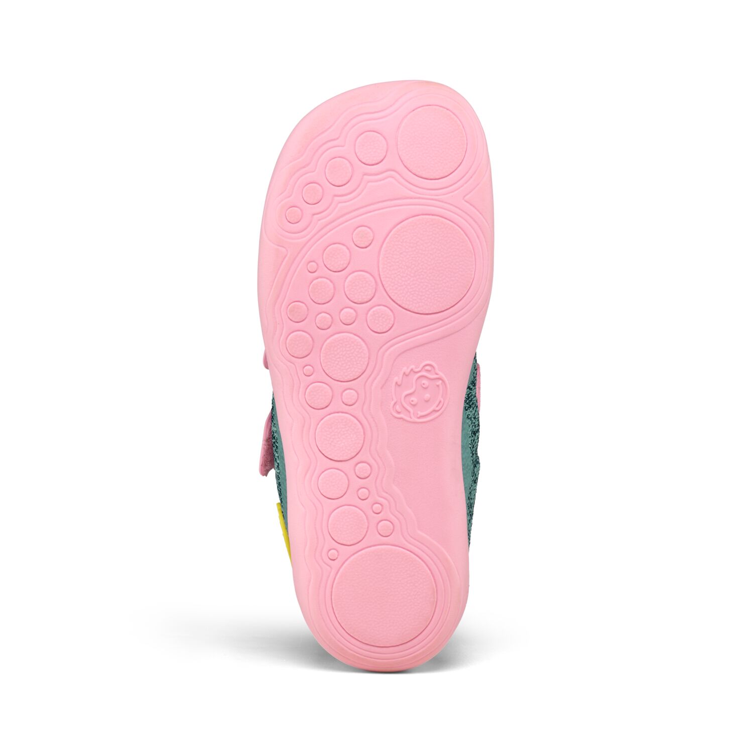 Die ultraleichte Verarbeitung sorgt für ein natürliches Laufgefühl – ganz nach dem Motto: so wenig Material wie nötig, so viel Schutz wie möglich. Die flexible Sohle ermöglicht ein Barfußgefühl, bei dem Kinder den Untergrund spüren können.