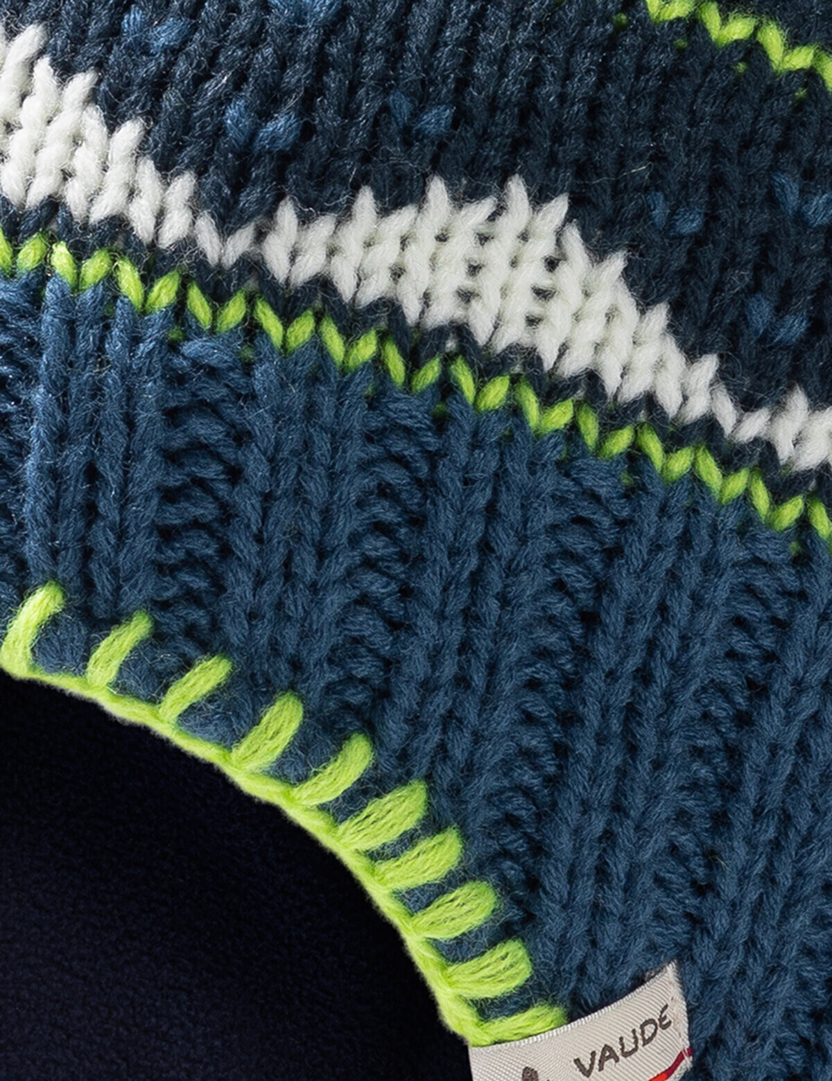 Das i-Tüpfelchen jedes Winteroutfits: Die Kids Knitted Cap von Vaude! Mit ihren witzig verlängerten Ohrenklappen und dem kuscheligen Fleece-Innenfutter hält sie kleine Köpfe schön warm – ob auf dem Schulweg, beim Schlittenfahren oder Schneemannbauen.