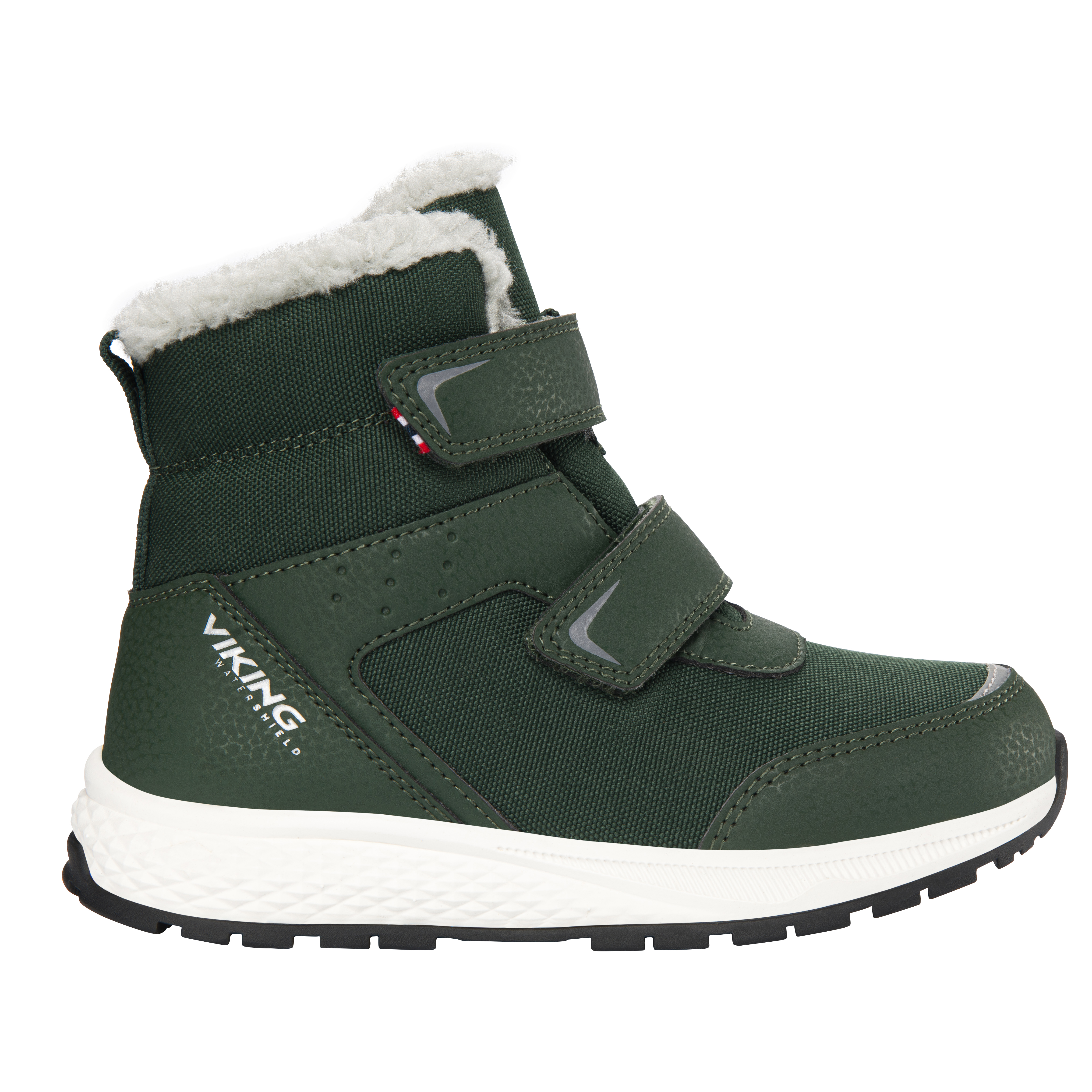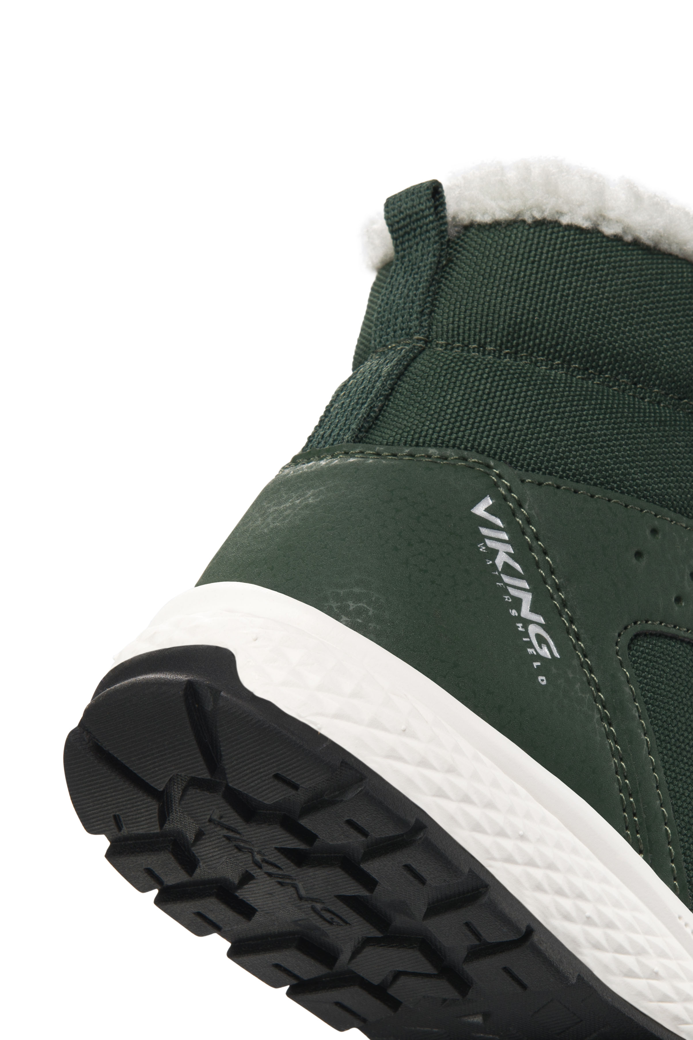 Der Equip Mid WP 2V begleitet Kinder zuverlässig durch jeden Tag voller Entdeckungen. Der stabile, mittelhohe Bootie schützt mit strapazierfähiger Verstärkung vor Schmutz und Nässe und bietet einen schützenden Stützrahmen. Zwei Klettverschlüsse sorgen für kinderleichtes An- und Ausziehen sowie eine optimale Anpassung. Die Vikings Watershield-Membran hält die Füße trocken, während eine warme Isolierschicht die Kälte fernhält. Die leichte EVA-Zwischensohle dämpft jeden Schritt, und die Vollgummi-Laufsohle sorgt für sicheren Grip auf rutschigen Untergründen.
