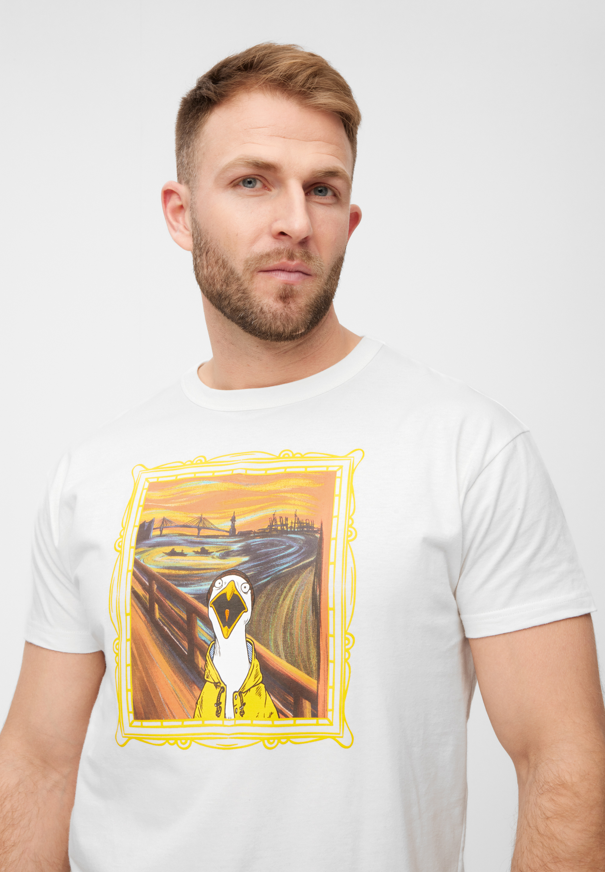 „Der Schrei“ mal anders: hier wird nicht mit Pinsel, sondern mit Schnabel und norddeutschem Humor gearbeitet. Die Schreimöwe im Friesennerz weiß eben, wie man Drama macht – und das ganz ohne Galerie. Kunst trifft Küstenwind, fertig ist dein neues Lieblingsshirt.