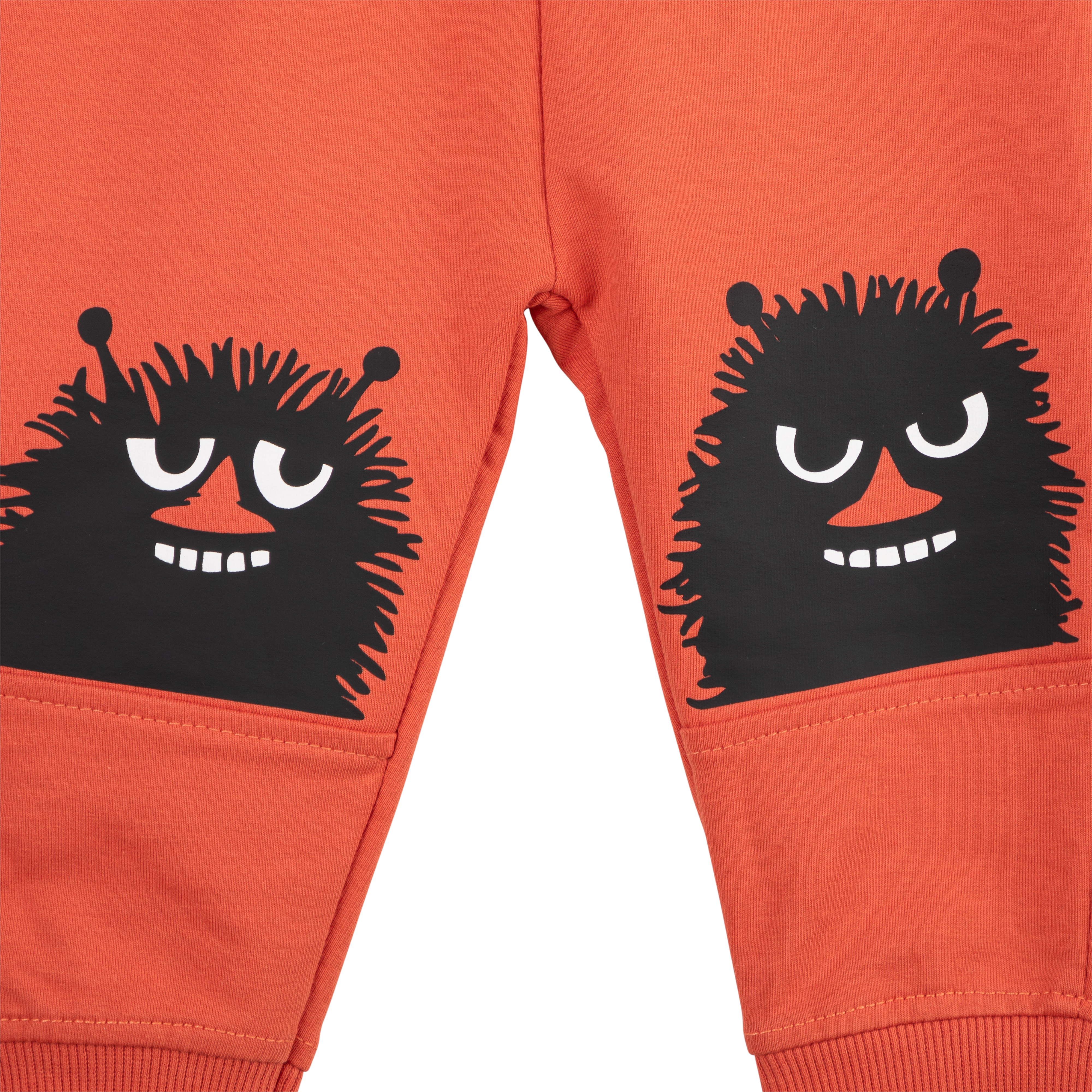 Stinky lebt im Moomintal, liebt Streiche und wird oft beim Diebstahl erwischt. Er liebt Moominmammas Marmeladen mehr als alles andere. Er ist von Natur aus neugierig, aber niemals bösartig. Bei diesen Joggern ist Stinky im oberen Teil des linken Hosenbeins als Gummidruck im Einsatz. Wohlfühlhose für jeden kleinen!