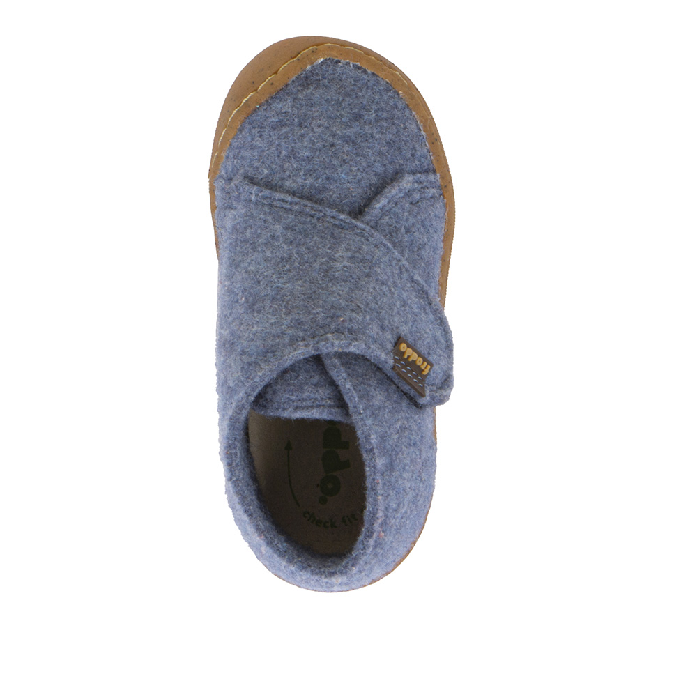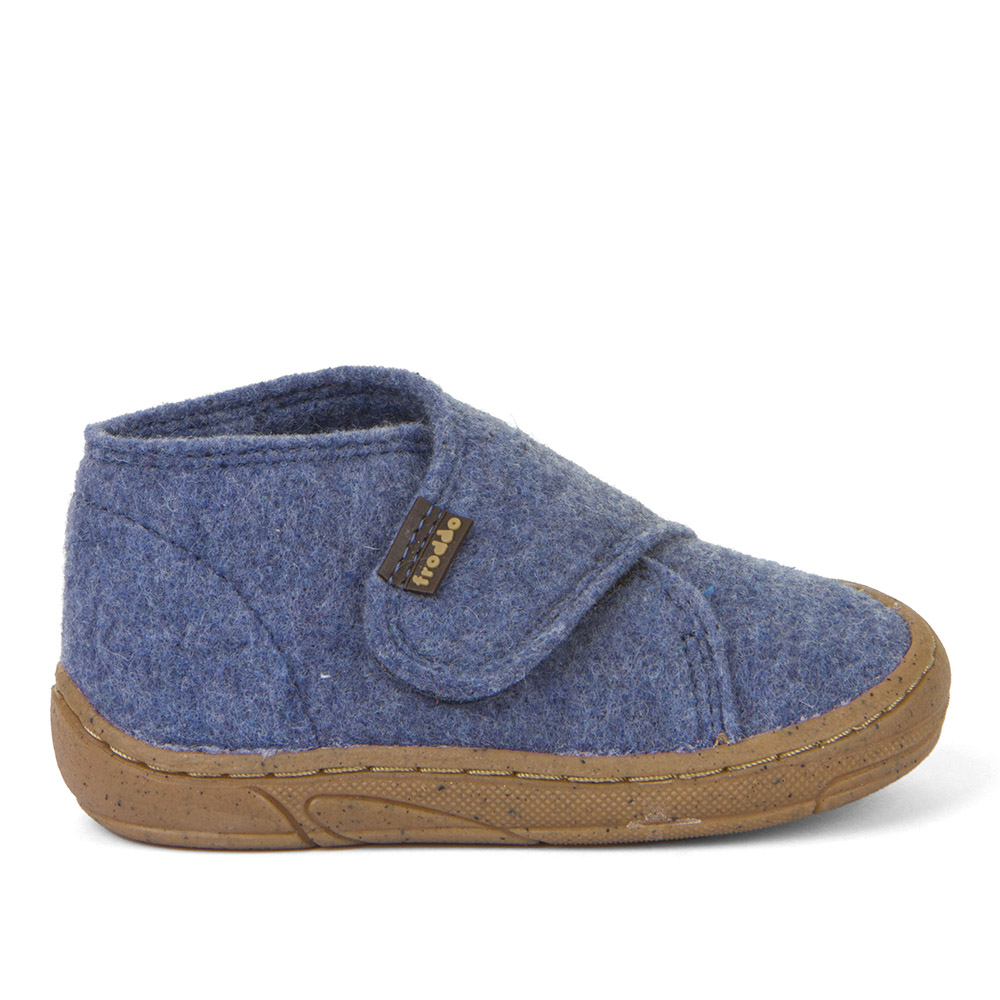 Die Froddo Hausschuhe mit Klettverschluss sind ideal für kleine Füße, die leicht hineinschlüpfen und sich frei bewegen möchten. Das Obermaterial aus 50% recycelter Wolle sorgt für ein angenehm warmes und atmungsaktives Tragegefühl. Dank der breiten Klettlasche lassen sich die Schuhe besonders leicht an- und ausziehen – perfekt für den Kindergarten oder Zuhause.